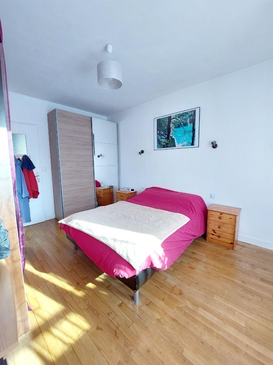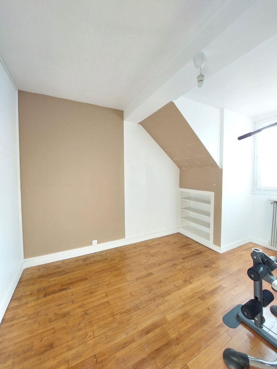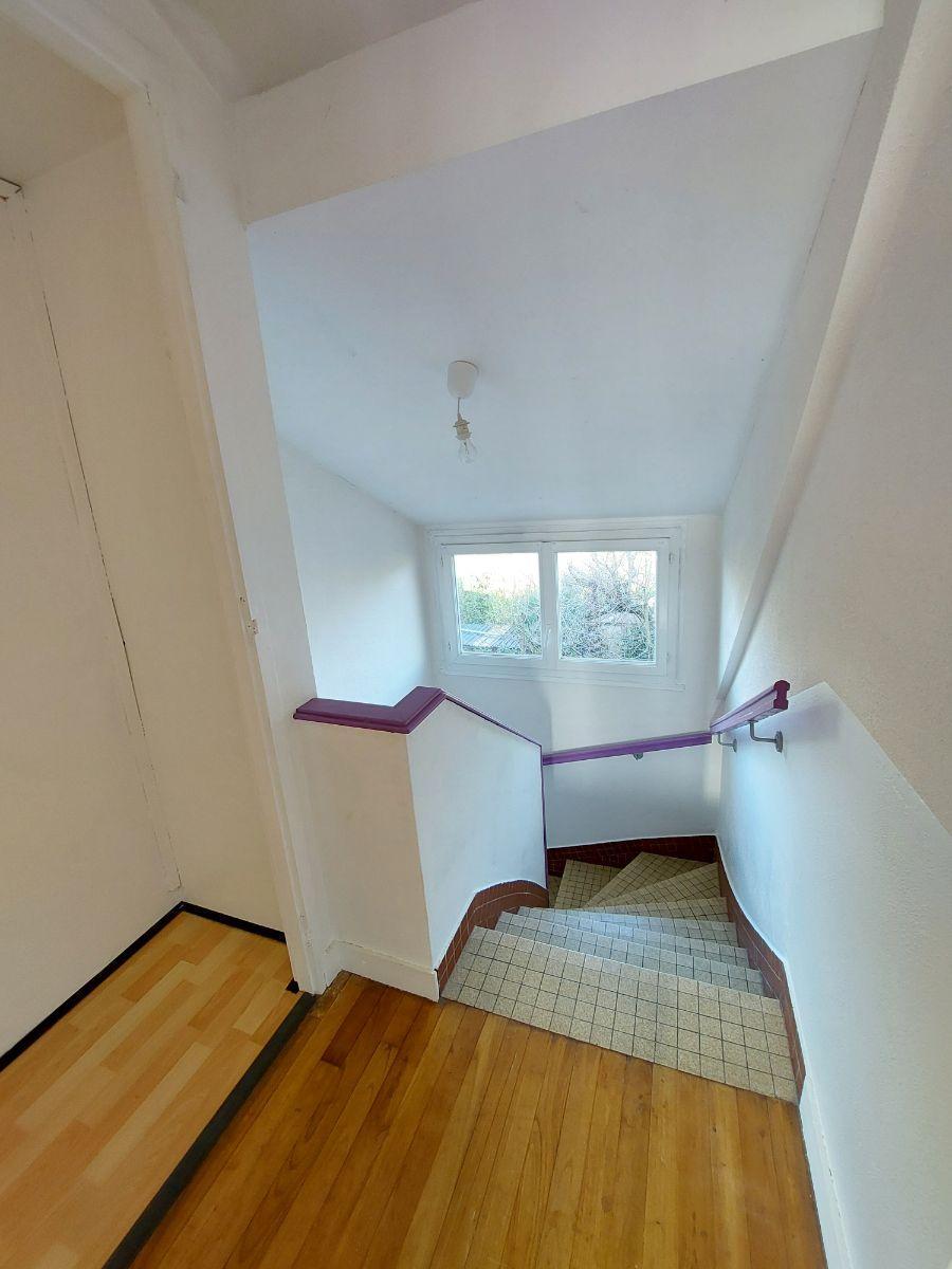 A VENDRE - RENNES (35) Quartier Cimetière de l'Est - Maison de 1964 120 m² + deux garages + jardin clos. Maison sur trois niveaux qui se compose : au-rez-de-chaussée, entrée, wc, deux garages, atelier, buanderie (possibilité de rendre ce niveau en habitable) Au premier étage : salle d'eau et wc, débarras, dégagement, cuisine, salon séjour, bureau, chambre. Au dernier étage : dégagement, trois chambres, espace jeux, salle d'eau et wc. Jardins clos exposé Nord et Sud, chauffage pompe à chaleur (1994) et gaz en complément ainsi que cheminée. Menuiserie en PVC double vitrage. Plafond du garage isolé côté extension.
