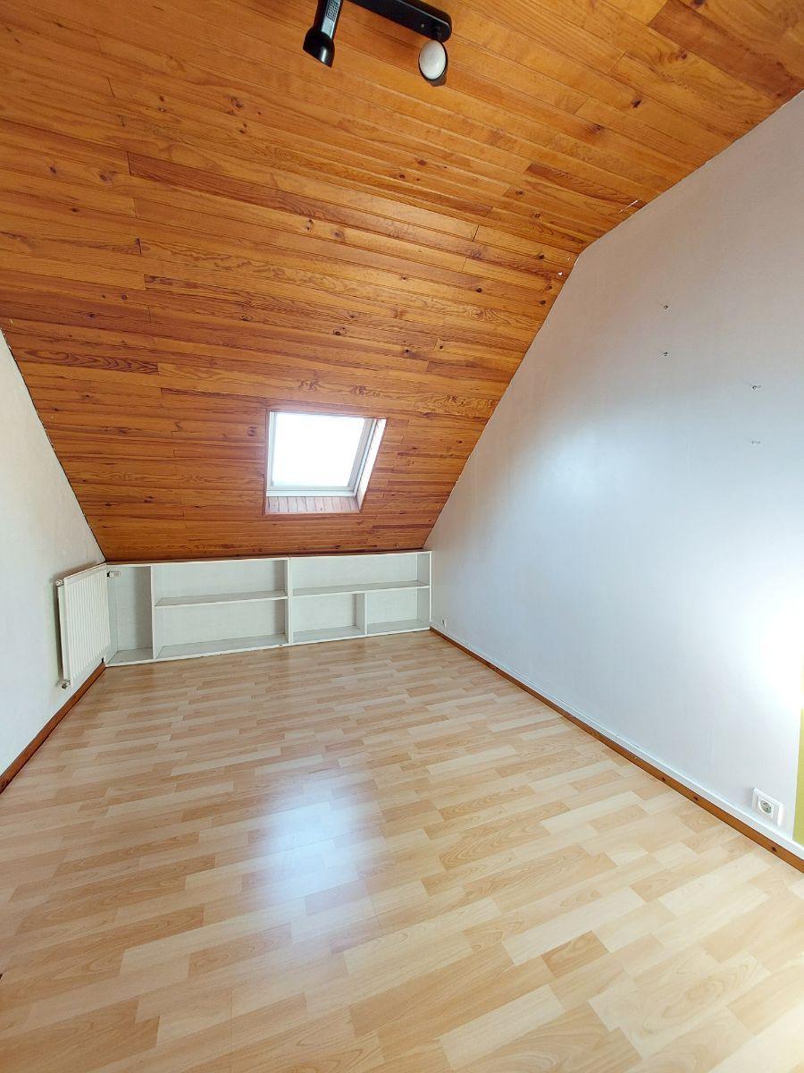 A VENDRE - RENNES (35) Quartier Cimetière de l'Est - Maison de 1964 120 m² + deux garages + jardin clos. Maison sur trois niveaux qui se compose : au-rez-de-chaussée, entrée, wc, deux garages, atelier, buanderie (possibilité de rendre ce niveau en habitable) Au premier étage : salle d'eau et wc, débarras, dégagement, cuisine, salon séjour, bureau, chambre. Au dernier étage : dégagement, trois chambres, espace jeux, salle d'eau et wc. Jardins clos exposé Nord et Sud, chauffage pompe à chaleur (1994) et gaz en complément ainsi que cheminée. Menuiserie en PVC double vitrage. Plafond du garage isolé côté extension.